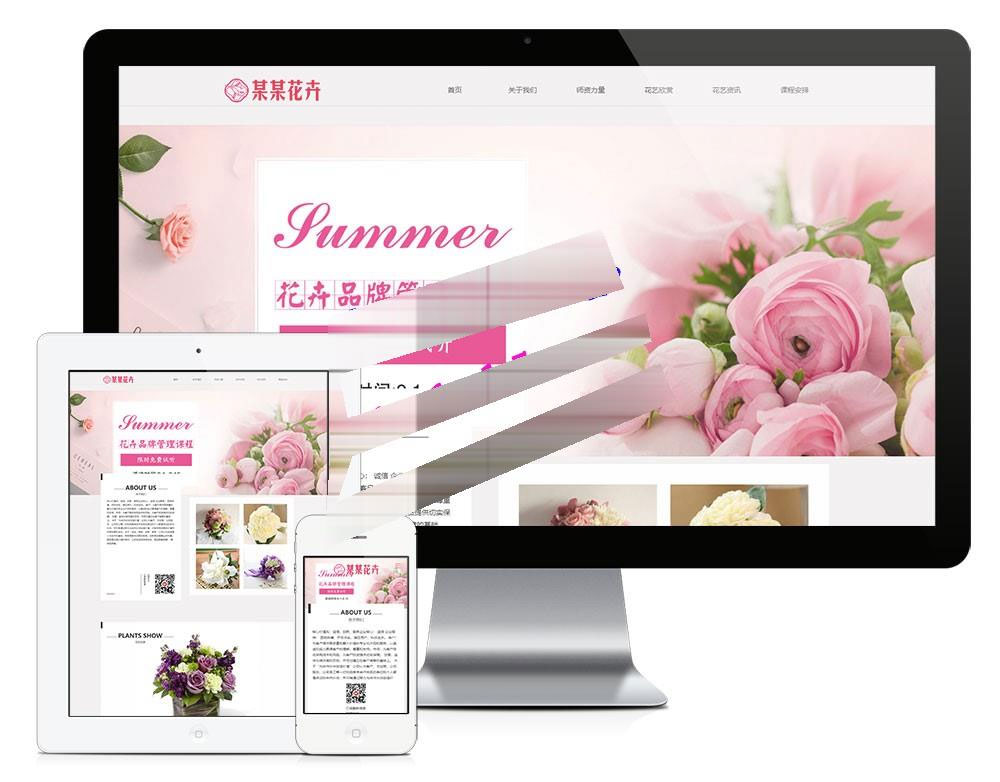易优cms响应式花卉插花培训企业网站模板源码 自适应手机端 带后台