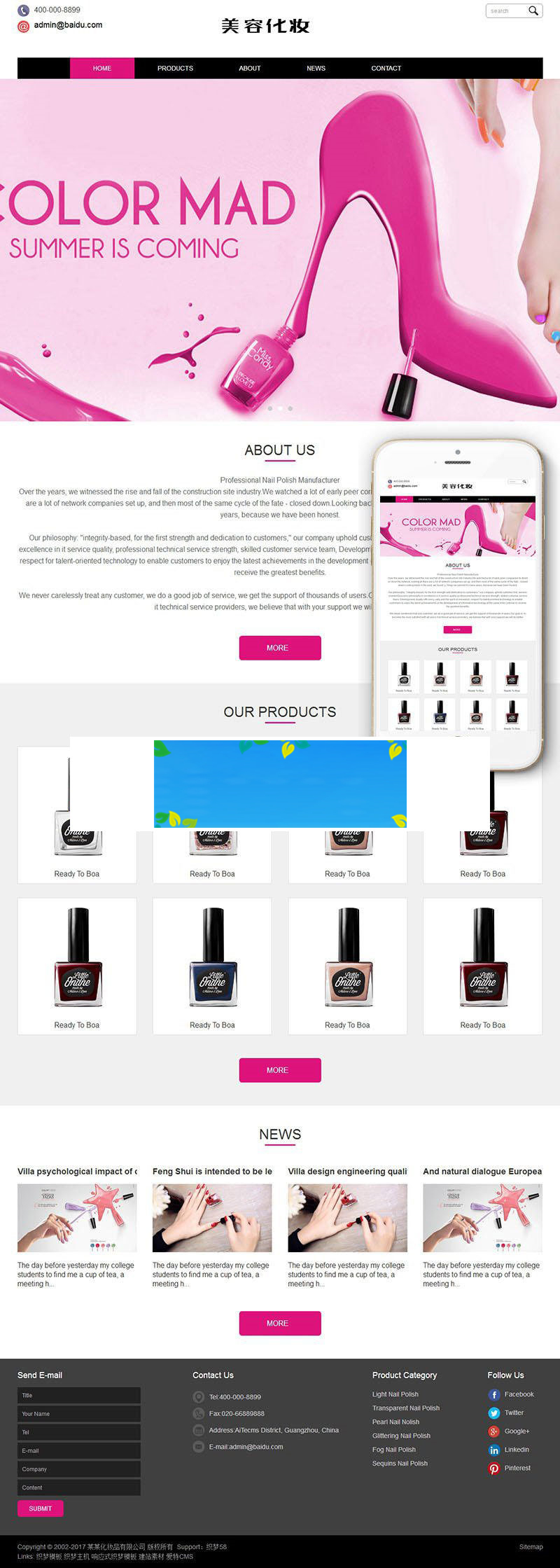 织梦精品源码最新内核开发的模板,该模板属于响应式自适应、外贸化妆美容产品类企业使用,一款适用性很强的模板,基本可以适合各行业的企业网站!