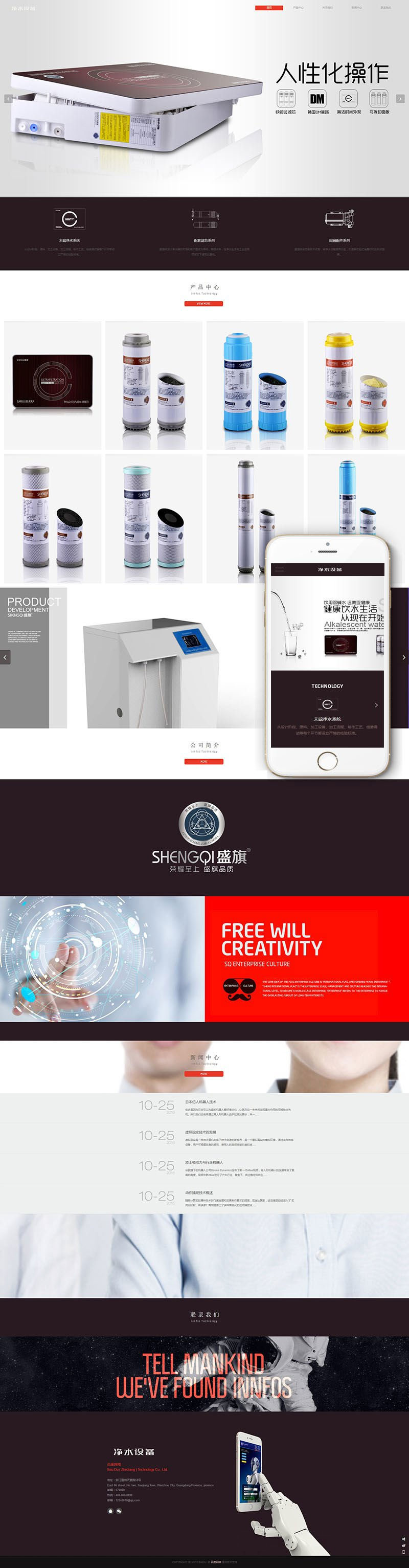 织梦最新内核开发的模板,该模板属于企业通用类、饮水器设备、净水系统设备类等企业都可使用,