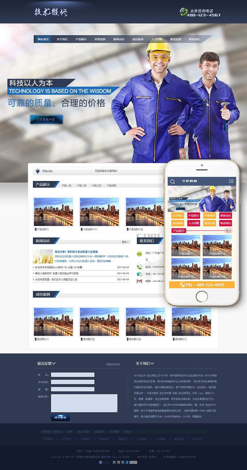 织梦最新内核开发的模板,该模板属于企业通用类、各类家电维修、电子机械设备维修类企业都可使用,