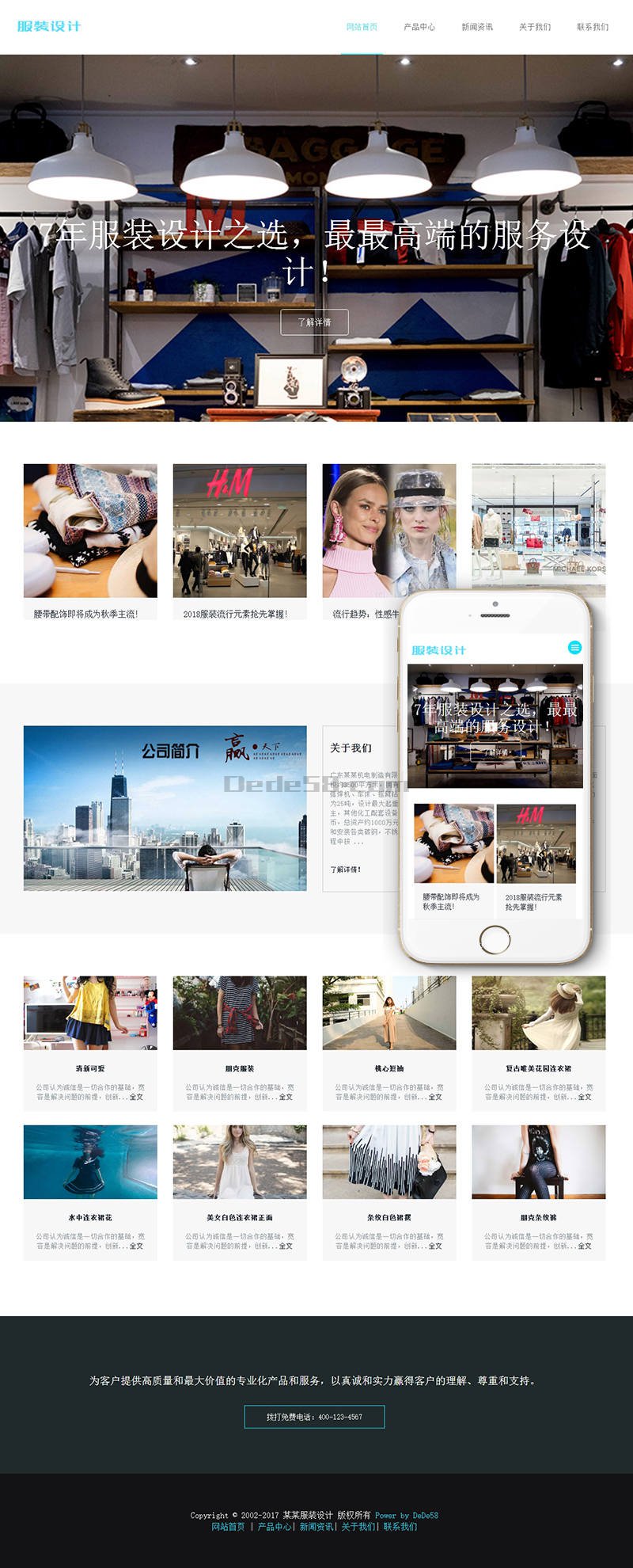 织梦dedecms响应式蓝色服装设计公司网站模板(自适应手机移动端)
