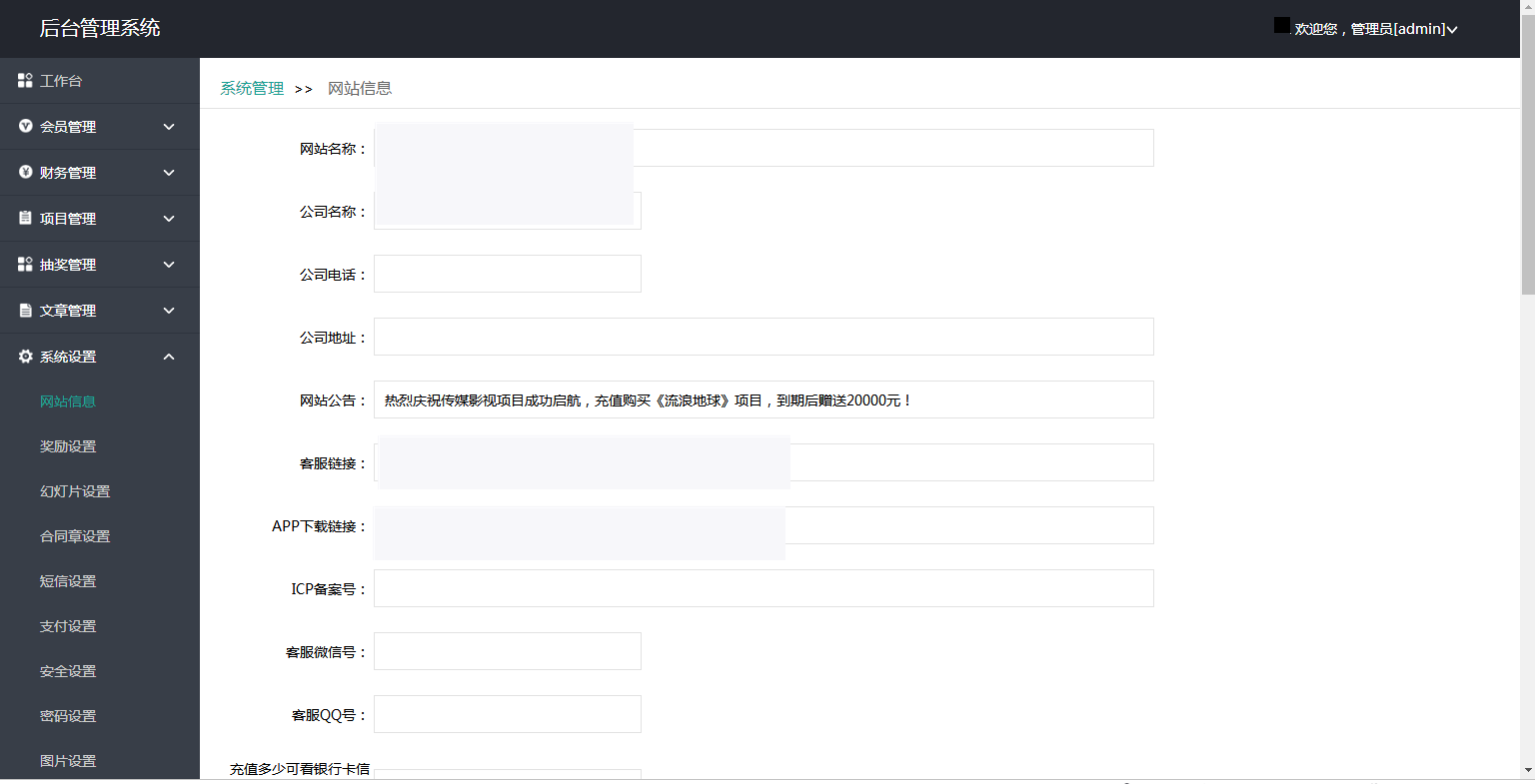 伪静态就是自带的thinkphp 前台只有手机版可以访问,没有电脑页 导入数据库 修改数据库信息文件:Public/config.php 码支付配置文件:codepay/codepay_config.php 修改码支付ID与通信密钥 拉到最下面配置数据库连接 短信为中国网建接口,修改文件\\\\\\\\\\\\\\\\App\\\\\\\\\\\\\\\\Common\\\\\\\\\\\\\\\\Common\\\\\\\\\\\\\\\\other.php 46行47行 申请地址:www.smschinese.cn 自动分红页面地址(需24小时一直打开):你的域名/index.php?s=/Handle/jiesuan 后台登录:域名/chuhzg19tvgabxm/login.html 用户名:admin 密码:www.ohbbs.cn