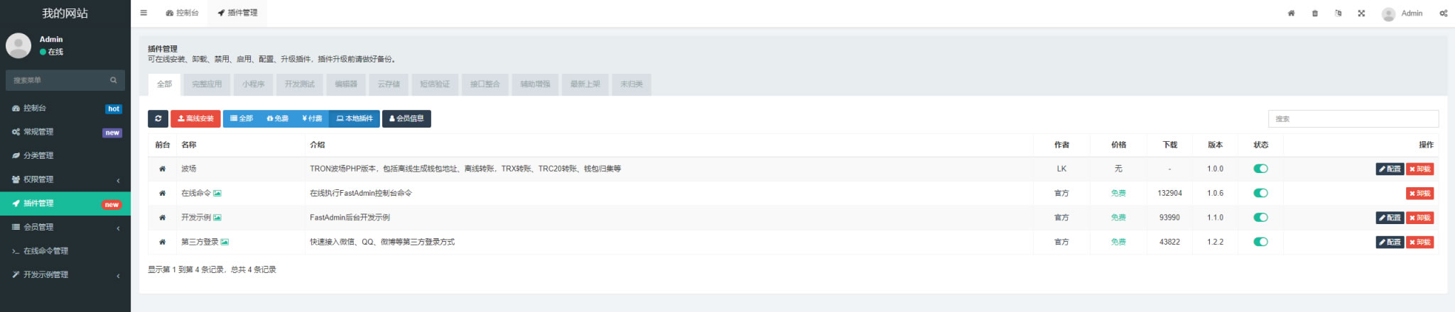 仅仅集成到了一个开源的结构Bootstrap罢了,后台FastAdmin,其实我也没搞理解,其时看到说是不需求自己建立节点,在这个代码里边装备网络节点链接就能够,给需求的人吧,下面是本来对这个源码的介绍。