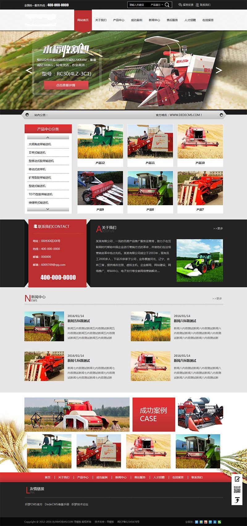(手机自适应)收割机农业机械设备公司网站源码 dedecms织梦模版 声明:本站所有文章,如无特殊说明或标注,均为本站原创发布。任何个人或组织,在未征得本站同意时,禁止复制、盗用、采集、发布本站内容到任何网站、书籍等各类媒体平台。如若本站内容侵犯了原著者的合法权益,可联系我们进行处理。