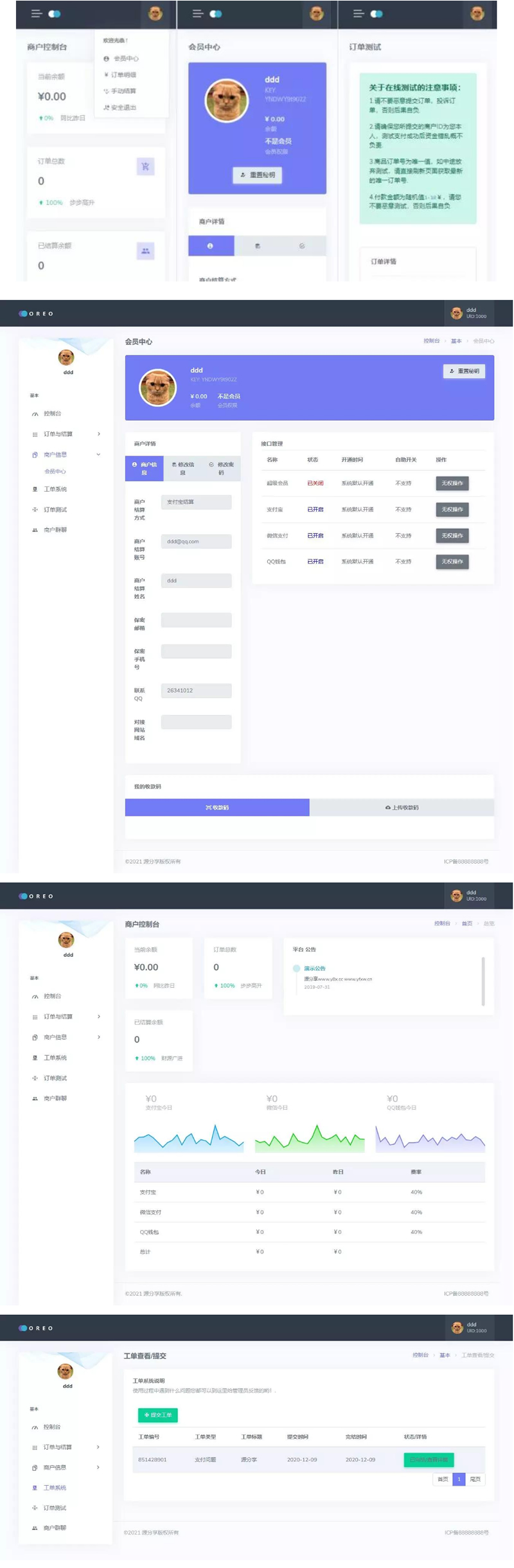 集合了微信官方+支付宝官方+易商户+码支付+易通商户+网信钱包免签即时到账接口,让个人用户也能用上好用的易支付商户系统,系统自带10套基础模板。
