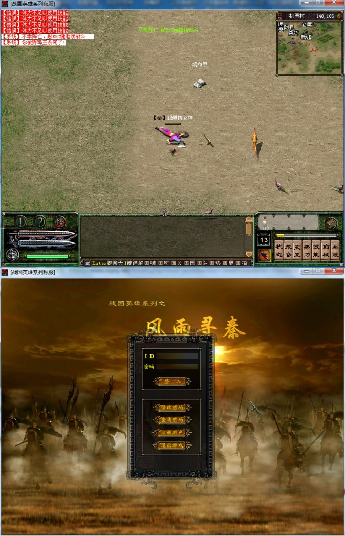 战国英雄(风雨寻秦)一键端支持win10系统-提供外网教程本端经过整合客户端可以支持win10系统运行,内含外网教程,服务端只在server2003和xp系统下测试通过,无任务,地图刷怪正常!
