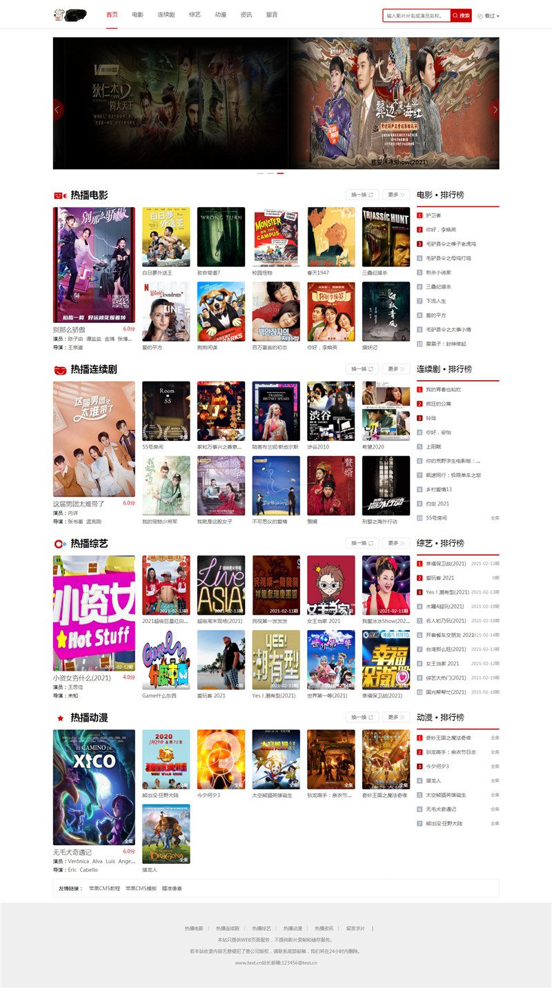 苹果CMSV10红色自适应网站模板,布局简单小巧,自适应多终端,苹果CMS版本。