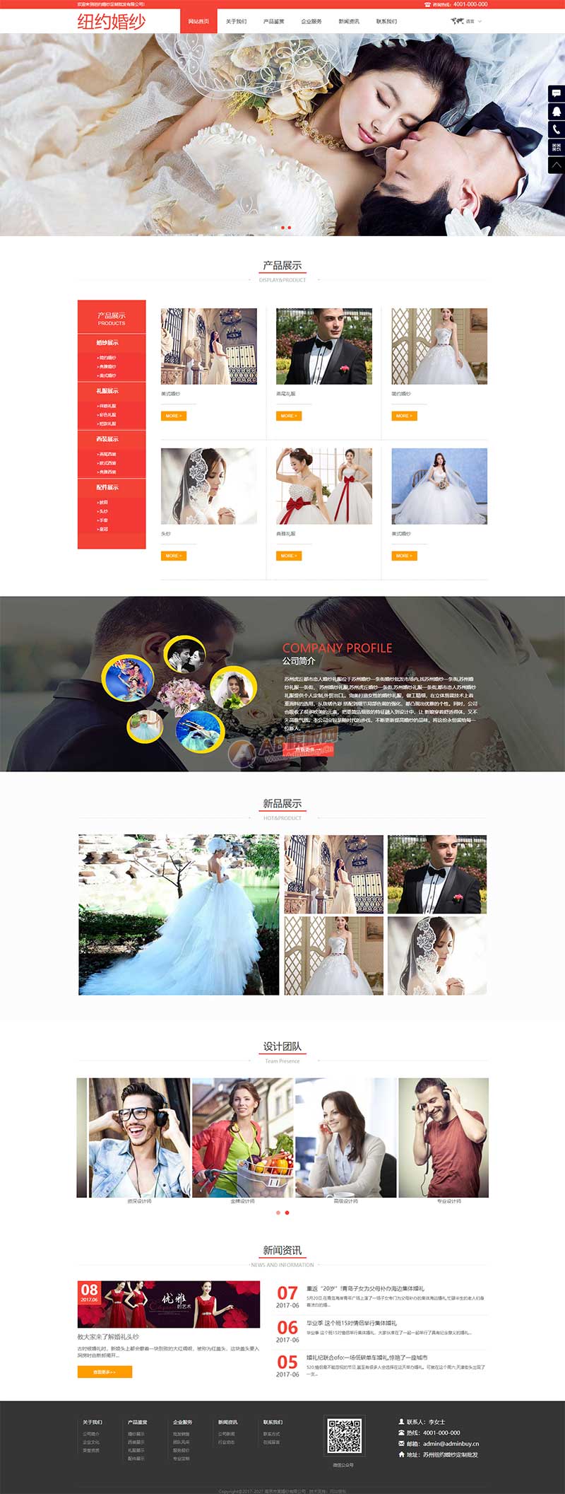 响应式的婚纱摄影公司网站模板,红色大气的婚纱拍摄/婚庆策划公司网站模板html下载。主要页面有:关于我们、产品鉴赏、企业服务、新闻资讯、联系我们总共12个页面。