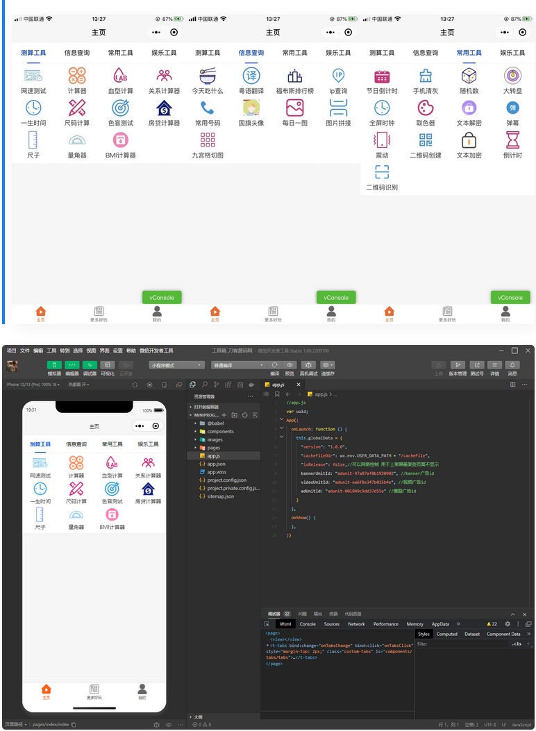 这是一款云开发超多功能工具箱组合微信小程序源码
