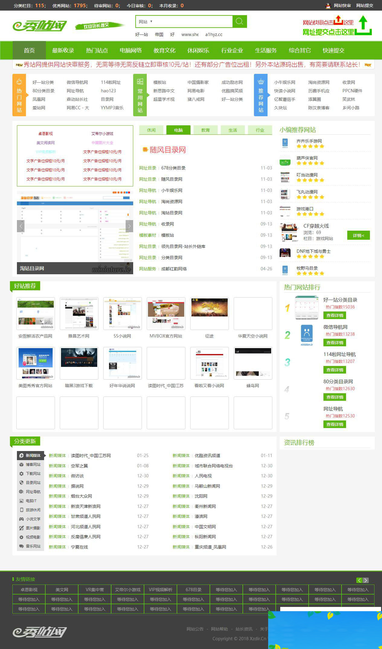 帝国CMS内核仿秀站网网址导航分类目录网站源码,支持网址提交功能等