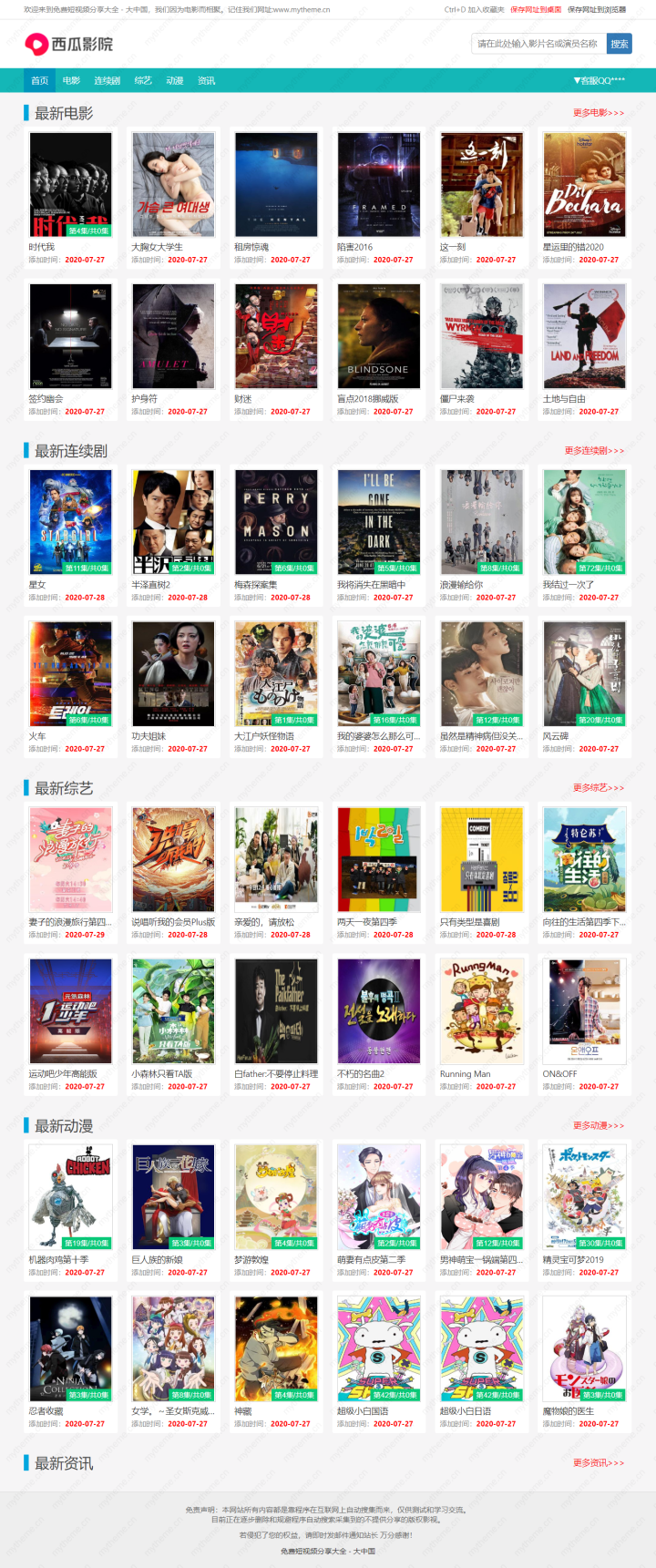 苹果cmsv10仿西瓜影院电脑手机影视自适应模板