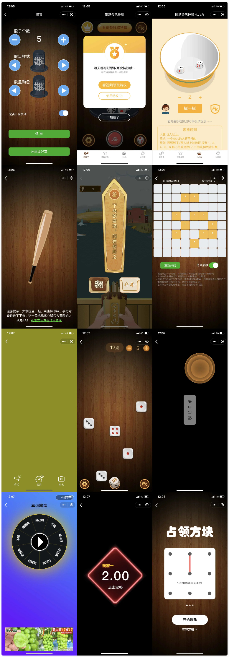 该款小程序还支持换筛盅皮肤哟,拥有多种皮肤看激励视频解释