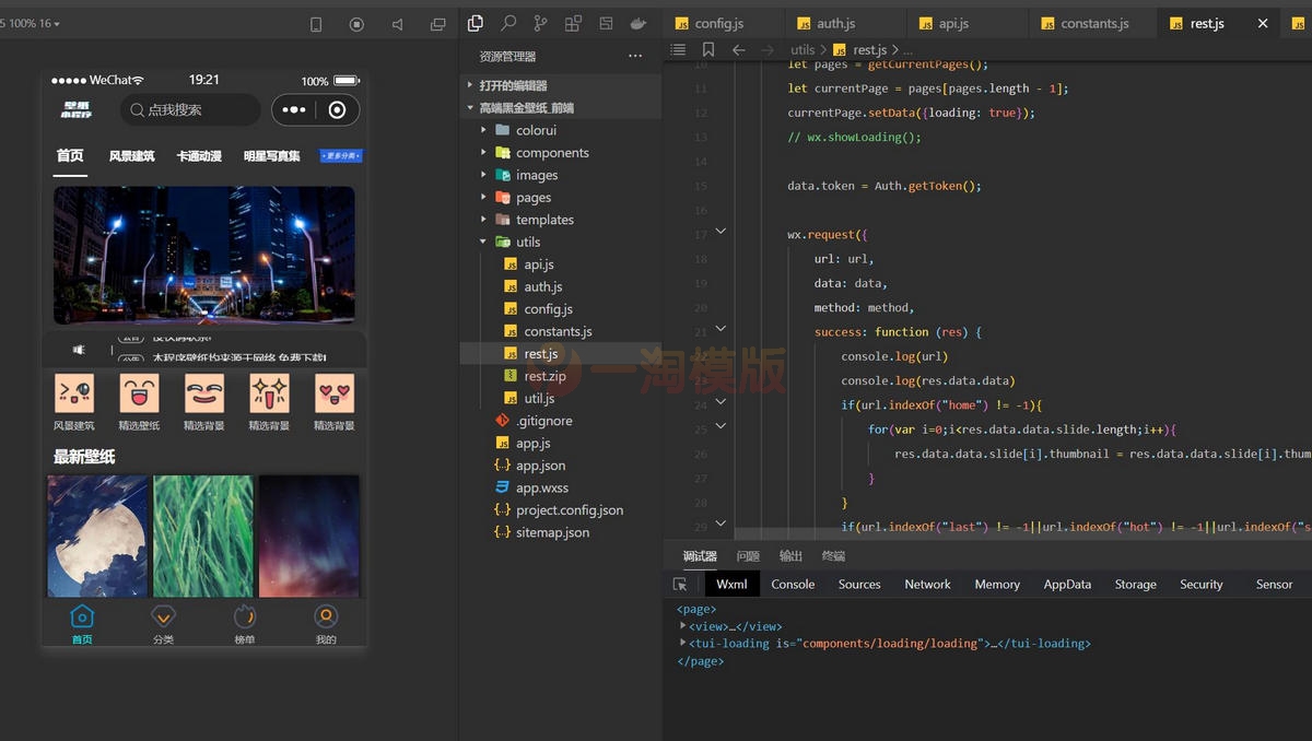 WordPress独立后台壁纸小程序是一款高端二开黑金壁纸微信小程序源码,拥有WP独立后台运行,可以自定义后台添加流量AD ID,这款源码是修复版的,支持看AD后保存壁纸到本地。