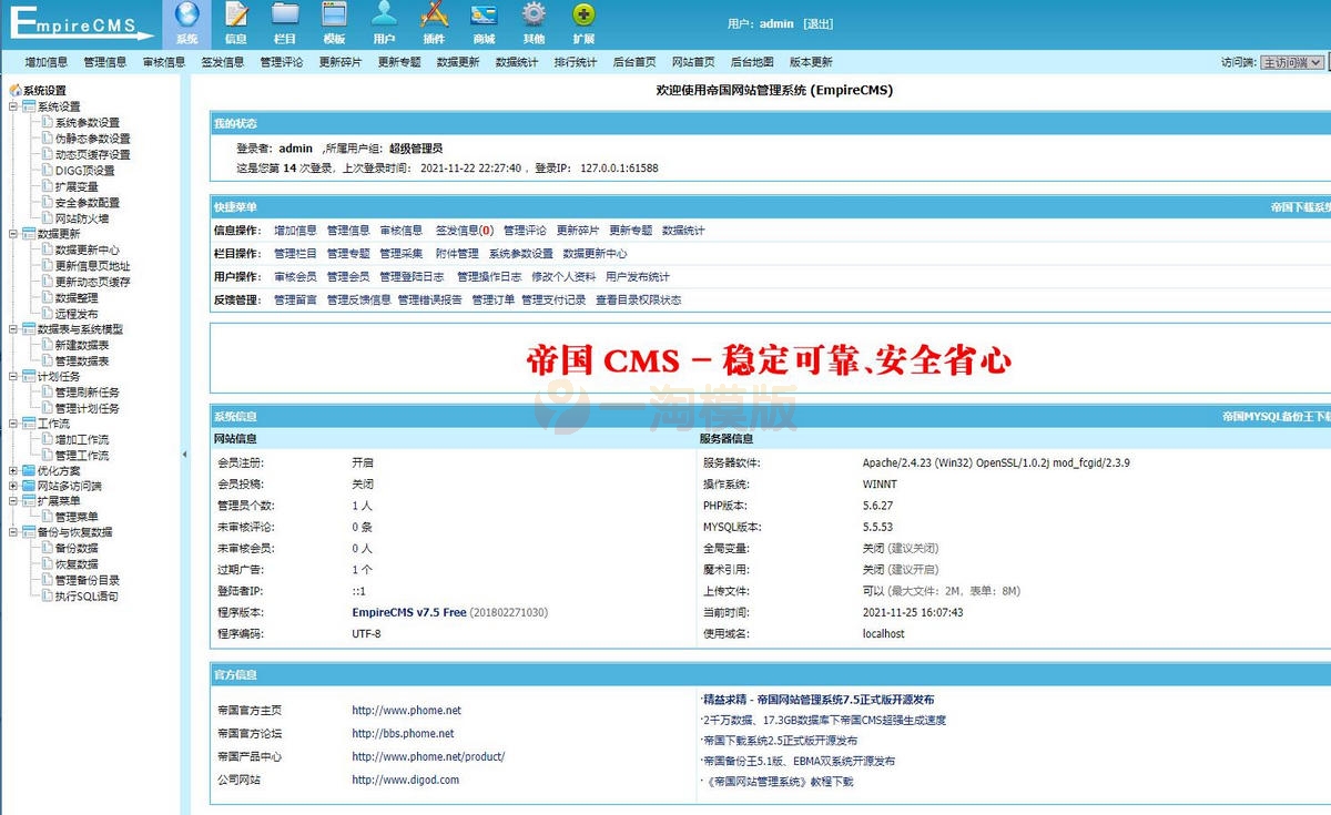 PS:模板带有部分内容数据,但没有图片附件,有需要的可以自行采集。
