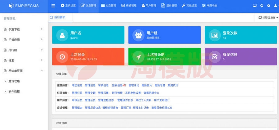 帝国CMS7.5响应式后台美化模板 支持GBK+UTF